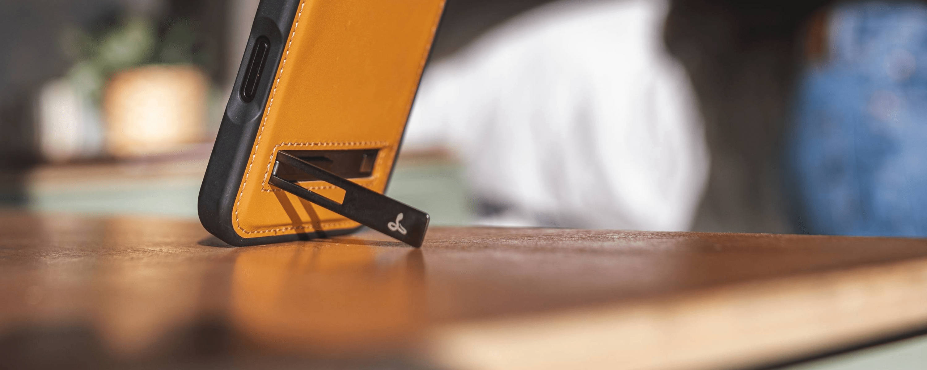 A built-in vertical kickstand for wobble-free video calls