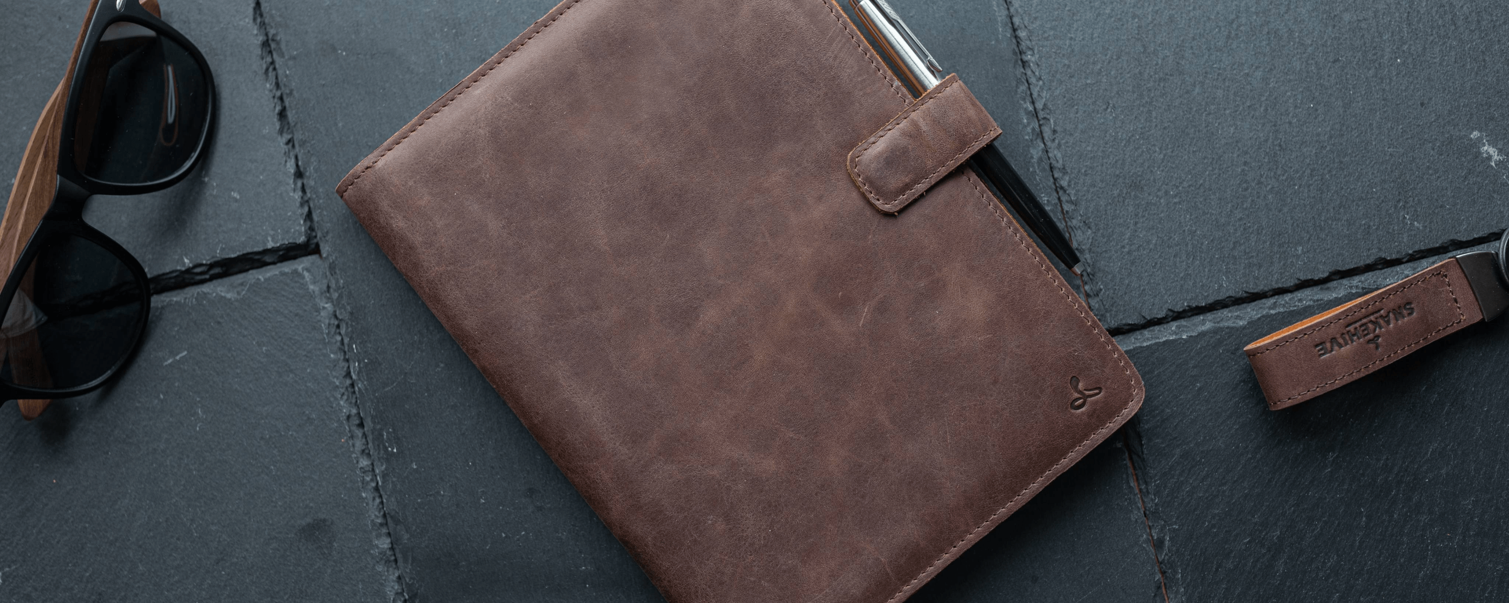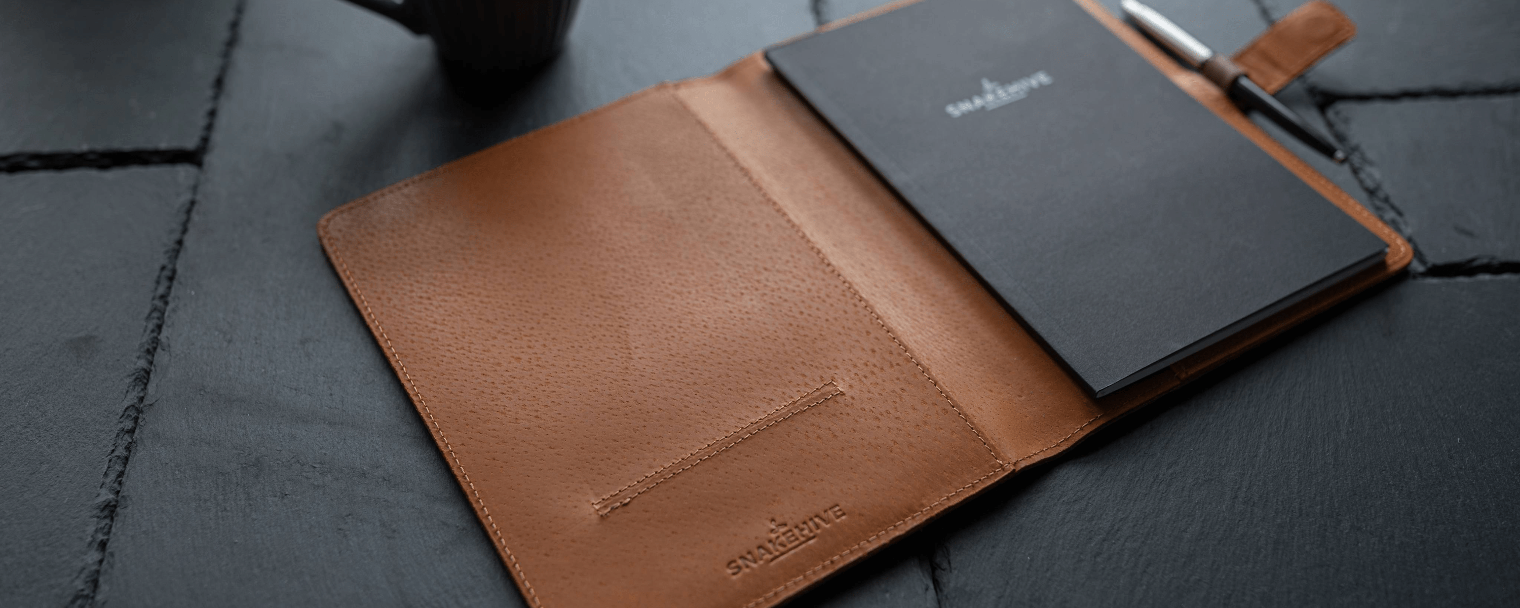 Designed to complement the Snakehive Vintage Collection, this notebook cover offers more than just protection. With ample space for storing notes and cards, a premium pigskin leather interior, and a built-in pen holder, it provides everything you need for a well-organised, efficient workspace.