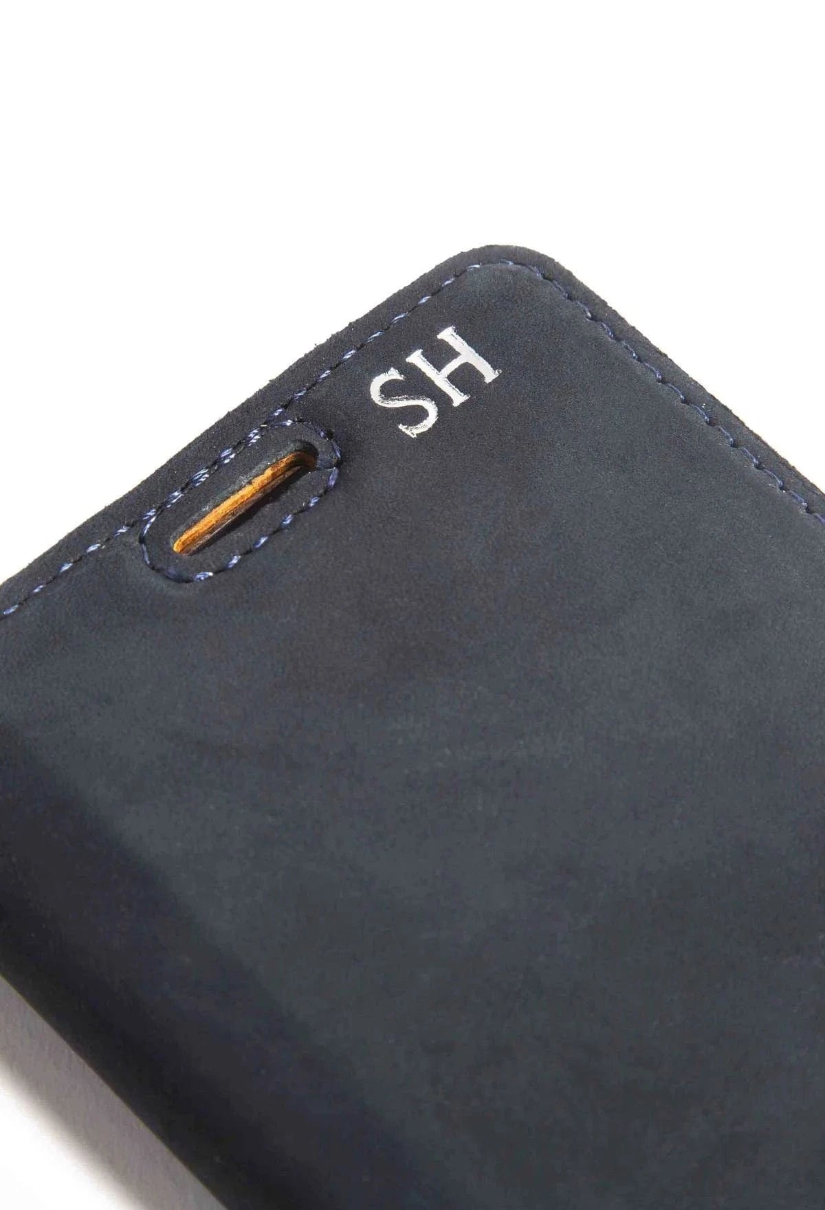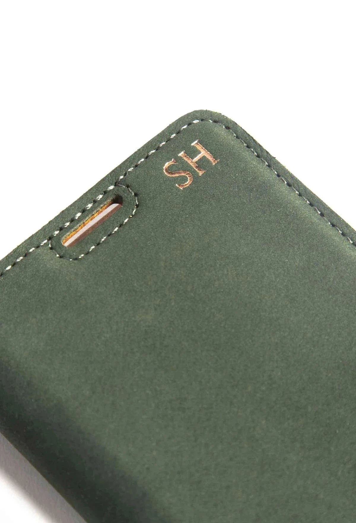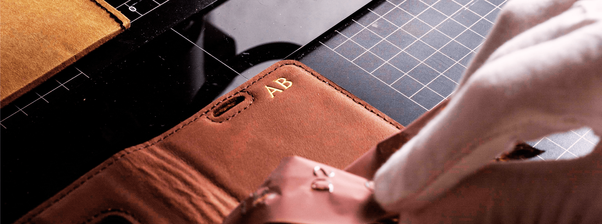 Our talented crafts folk can monogram our leather accessories using a foil press to produce a high-quality finish. Choose between colourless (deboss), ambient gold, polished silver, or rose gold embossed initials.