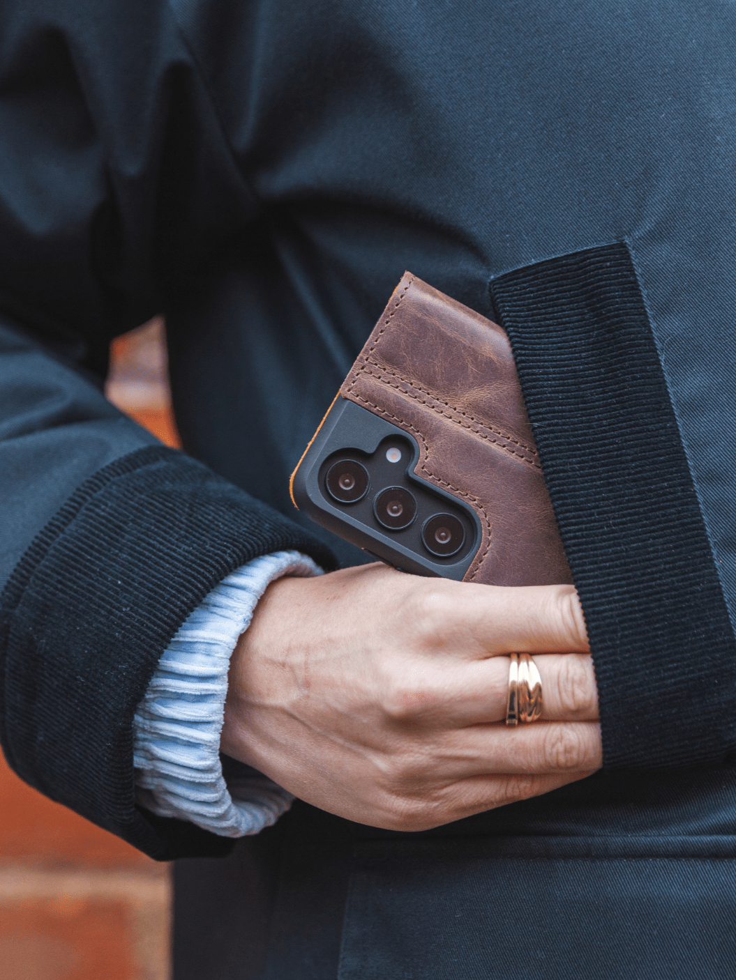 We design our premium leather phone cases for a wide range of devices, including iPhone, Samsung, and Google Pixel models. Simply search for your phone model to find the perfect fit.